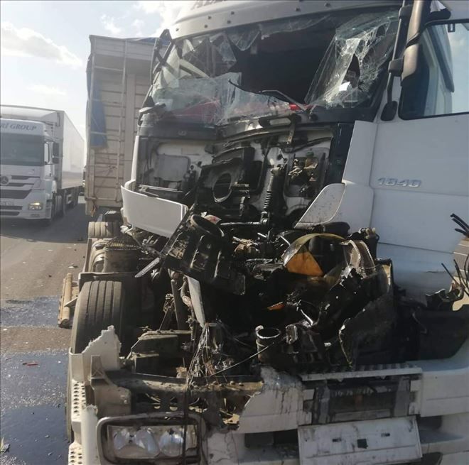 Emniyet kemerleri bağlı sürücüler kazadan yara almadan kurtulurken arkadaki tır kıllanılmaz hale geldi.