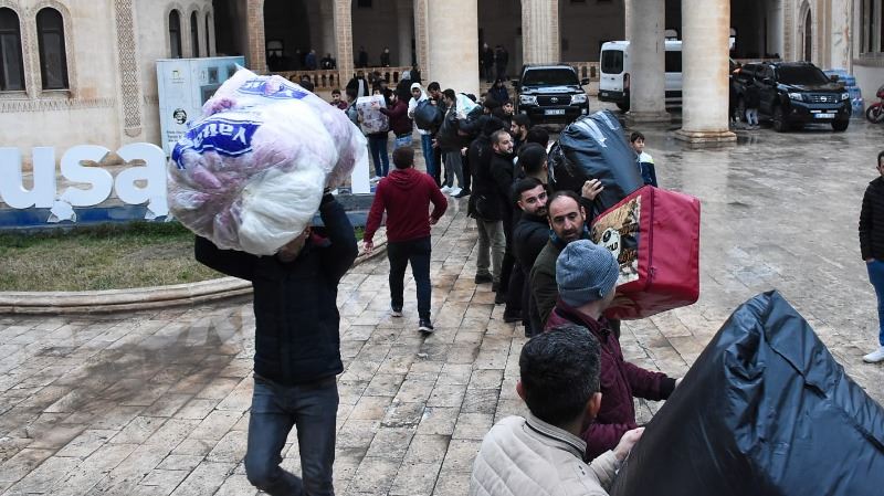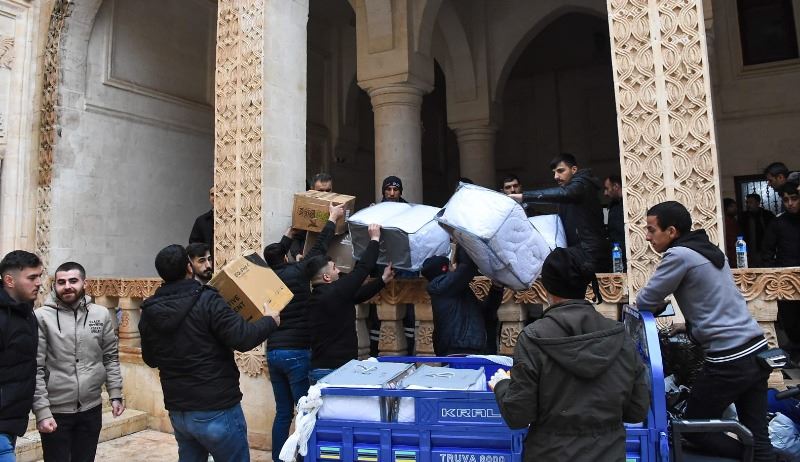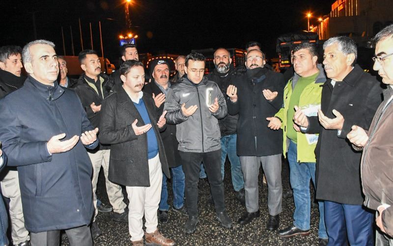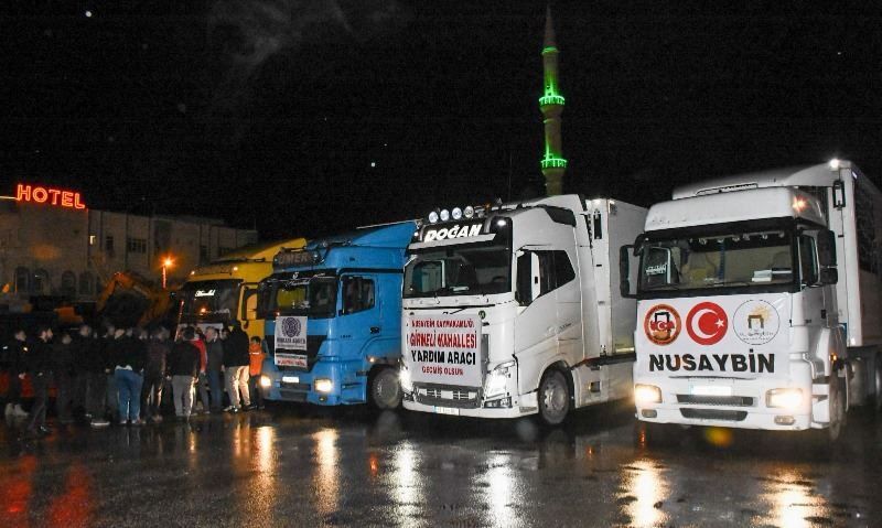 Nusaybin'de tırlara yüklenen yardım malzemeleri yapılan dualarla deprem bölgelerine gönderildi.