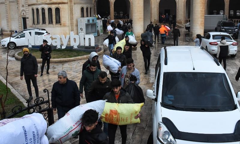 Mardin'in Nusaybin ilçesinde deprem bölgelerine gönderilmek üzere başlatılan yardım kampanyasına vatandaşlar büyük destek verdi.