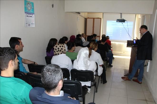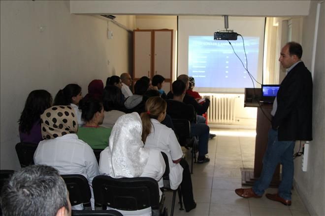 Nusaybin Devlet Hastanesi Dâhiliye Uzmanı Ömer Tanhan hastane sağlık personeline kanserle ilgili eğitim semineri verdi.