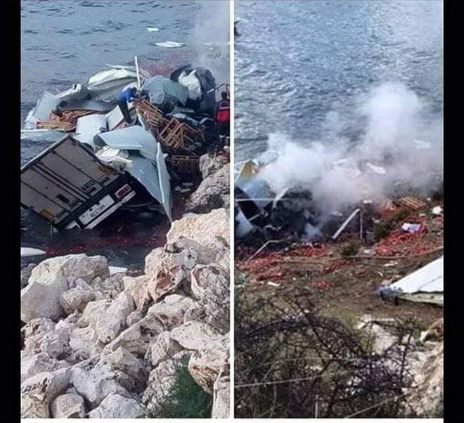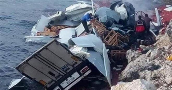 Deniz kıyısındaki kayalıklara düşen tır şoförü Fais Kartal, olay yerinde yaşamını yitirdi. Tırın taşıdığı domatesler ise denize döküldü.