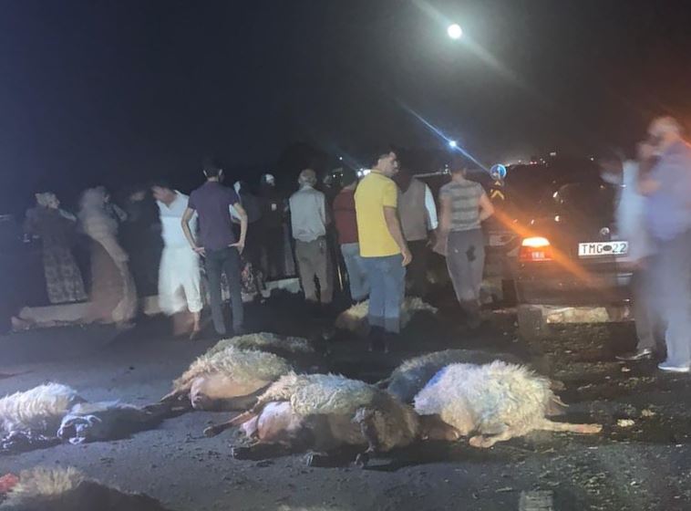 Sürücünün ismi öğrenilemeyen yabancı plakalı otomobil ile İpek yolu'nda seyir halindeyken aniden yola çıkan ve karşıdan karşıya geçen koyun sürüsünün içerisine daldı. Kazada 30 koyun telef olduğu öğrenildi.