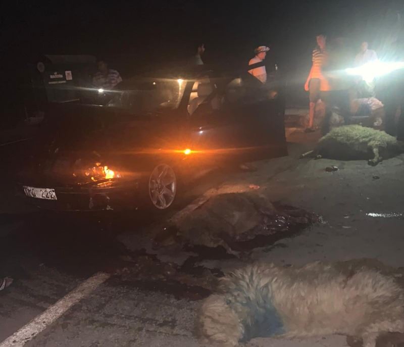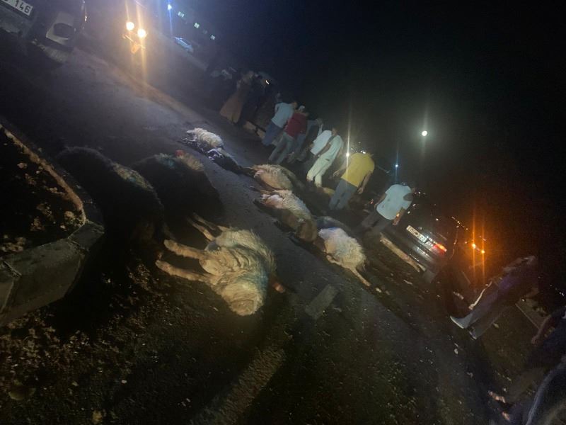 Otomobil koyunların içine daldı; 30 koyun telef oldu