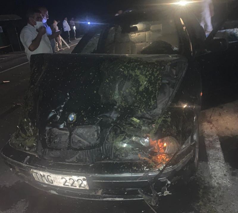 Otomobil içerisinde bulunan kişiler hafif şekilde yaralandığı bildirildi.