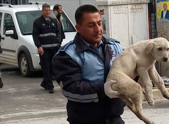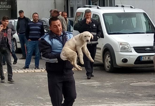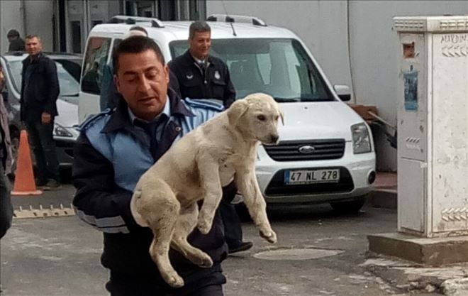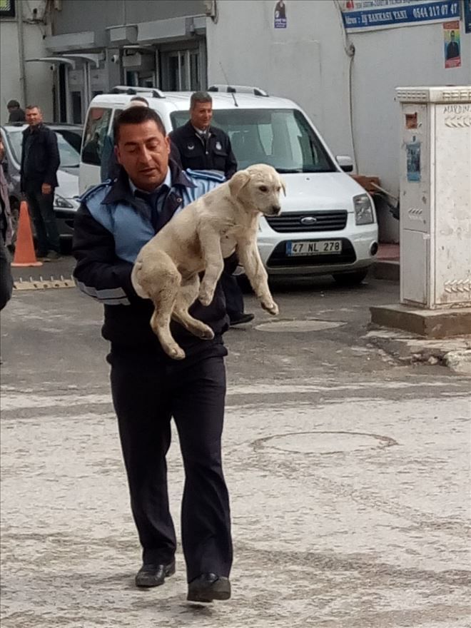 Mardin´in Nusaybin ilçe merkezinde bir otomobilin çarpması sonucu yaralanan başıboş yavru köpeği yerde yatarken gören, Belediye Zabıtası Korkut köpeği kucaklayıp veterinere götürdü.