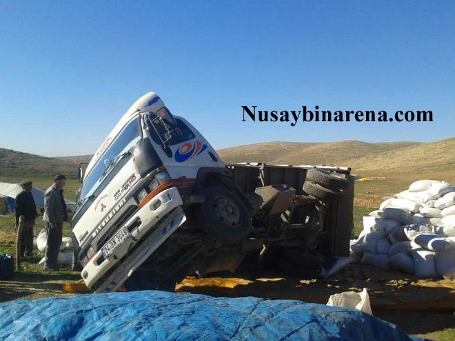 Edinen bilgilere göre, Nusaybin’e bağlı Bakısyan köyü yakınlarında konuçlanan göçebelere saman götüren Emin Yer yönetimindeki 34 BN 3048 plakalı damperli kamyona yüklediği çuvallar içersinde samanı boşaltmak isterken kamyonet devrildi. Sürücü hafif yaralandı. Kamyonet vinç yardımıyla kaldırıldı.-Haber-Ahmet Akkuş