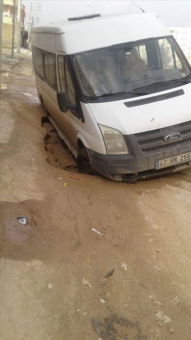 Alınan bilgilere göre, Nusaybin Devrim Mahallesi Huzur sokak üzerinde, Mahsum A, yönetimindeki 47 NN 266 plakalı minibüs ile seyir halindeyken toprağın çökmesi nedeniyle bulunduğu yerde açılan çukura düştü.