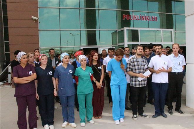 Nusaybin Devlet hastanesi önünde bir arya gelen SES üyeleri, sağlık çalışanlarına yönelik yapılan şiddeti protesto ettiler.
