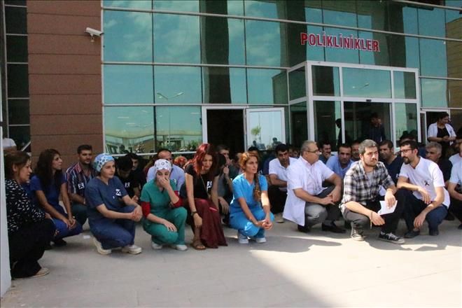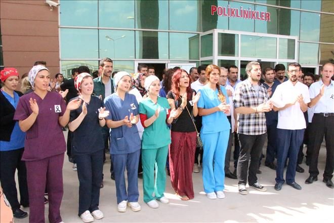 Açıklamadan sonra hastane önünde 5 dakikalık oturma eyleminden sonrada görevlerine geri döndüler.-Haber-Ahmet Akkuş