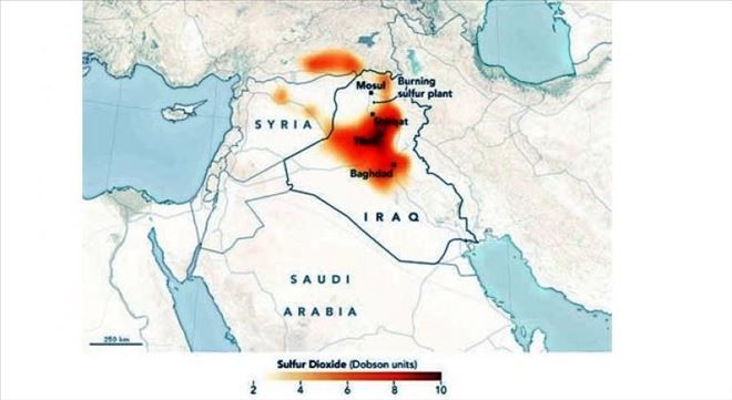 Musul operasyonunda hava saldırılarına engel olmak için petrol kuyularını ateşe veren DEAŞ Kayyara´daki bir fabrikada bulunan sülfür stoklarını da yakmıştı.