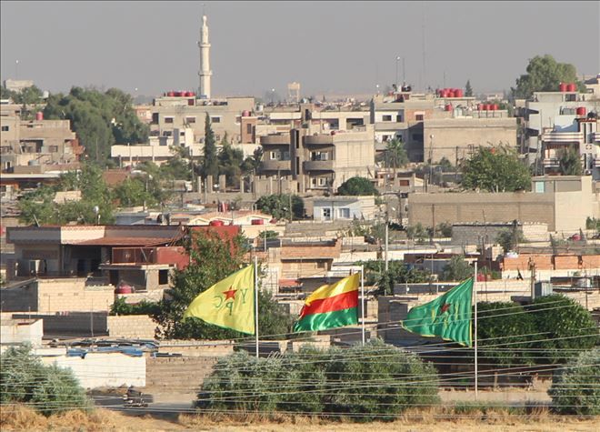 Suriye´nin Hasseki iline bağlı Kamışlı ilçesinin bir bölümü Esat rejimi ve bir bölümü YPG/YPJ örgütü kontrolünde olan bölgede, savaştan bu yana asılı bulunan 3 bayraktan 2´si Esat rejimi tarafından indirildiği belirtildi. İndirilen bayrakların önceki ve s