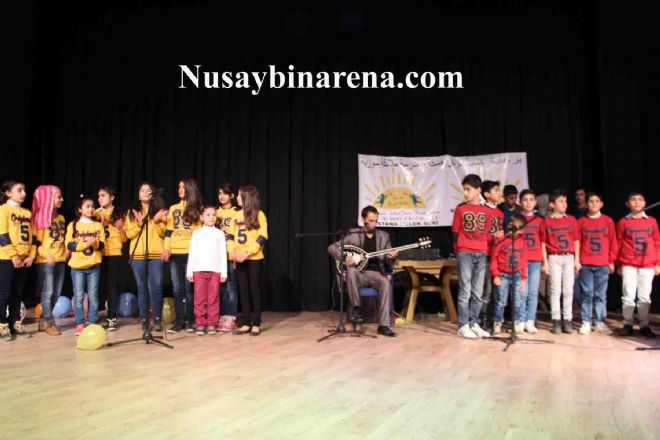 Nusaybin Mitanni Kültür Merkezi’nde düzenlenen etkinlikte Suriyeli çocuklar, Kürtçe ve Arapça olarak şarkılar seslendirdi, şiirler okudu.