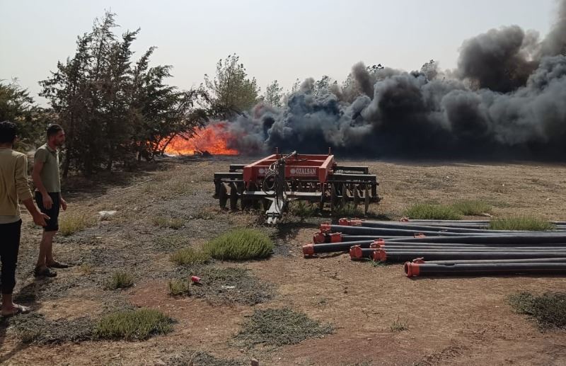 Edinilen bilgilere göre, olay Mardin’in Artuklu ilçesine bağlı Tilkitepe Mahallesinde meydana geldi. Bir vatandaşa ait damlama sistemi ile tarlayı sulamak için kullanılacak plastik borular henüz belirlenemeyen nedenden dolayı alev aldı. Kısa sürede büyüyen yangın tüm boruları kullanılmaz hale getirdi.