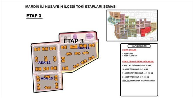 Noter huzurunda kurası çekilecek 3. Etapta, 8 adet 3+1 175 m2, 10 adet 2+1 90 m2, 7 adet 4+1 196 m2 ve 2 adet 3+1 135 m2 olmak üzere toplamda 383 mesken kurası çekileceği, 1 adet cami ve 1 adet taziye evinin de resmi kurumlara teslim edileceği bildirildi.