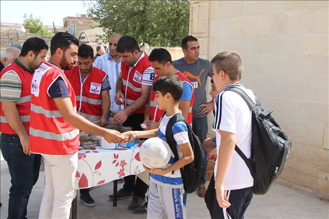 Mardin´in Nusaybin ilçesinde, Muharrem ayı dolayısıyla, Türk Kızılay Derneği Şubesi cuma namazından sonra çıkışta vatandaşa aşure ikram etti.