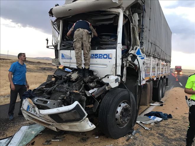 Uluslararası ipekyolunda meydana gelen kazada seyir halindei kamyon önündeki buğday yüklü kamyona çarptı, 1 kişi hayatını kaybetti.