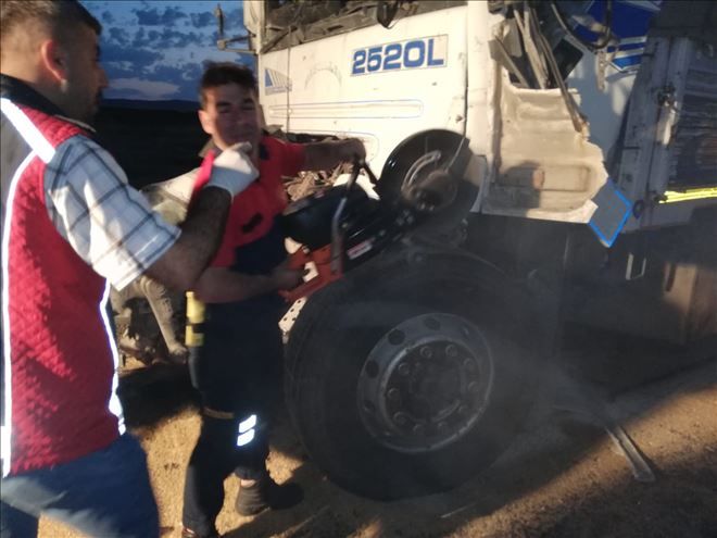 Kamyonda sıkışarak hayatını kaybeden Faik Güçlü´nün cesedi, bölgeye gelen Mardin Büyükşehir Belediyesine bağlı Nusaybin İtfaiyesi arama - kurtarma ekipleri tarafından sıkıştığı kamyonundan çıkarıldı.