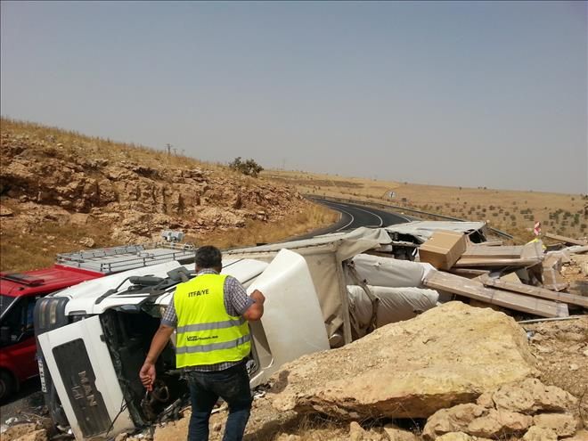 Midyat-Nusaybin ilçesi karayolunda virajı alamayan Tır devrilmesi sonucu sürücü ağır yaralandı.