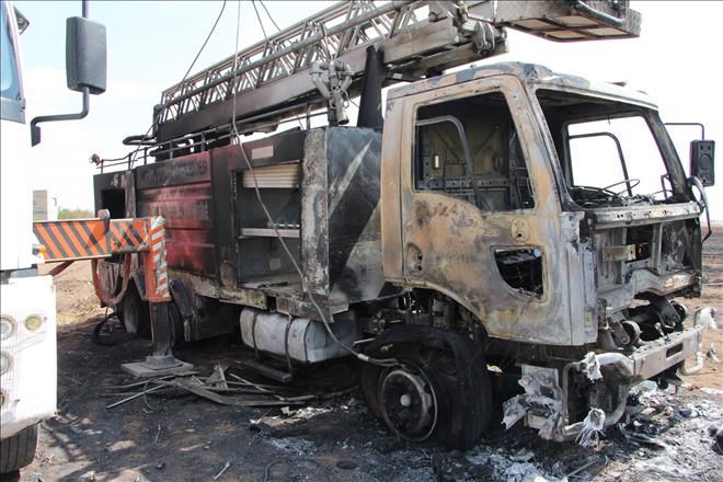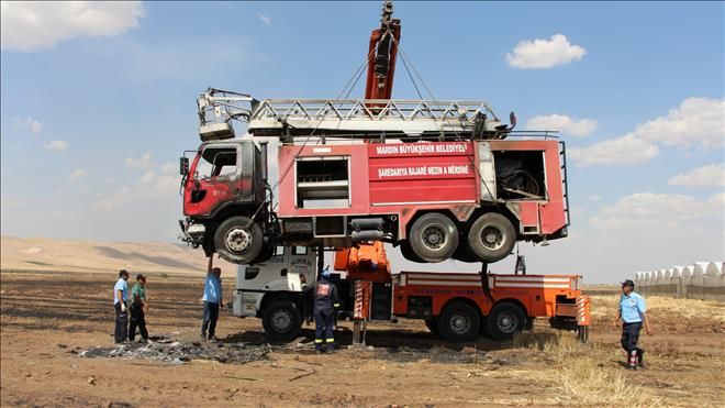 Nusaybin´de geçen günlerde anız yangının buğday ekinlerine sıçramaması için söndürmeye giden itfaiye aracı alevler içinde kalarak yandı. Araç yanarken sürücü ve er araçtan zorla çanlarını kurtarmıştı. Ancak sürücü yüzü yanarak hafif şekilde yaralanmıştı. Yanan araç yerinden vinç yardımıyla kaldırılarak tamire gönderildi.-Haber-Ahmet Akkuş