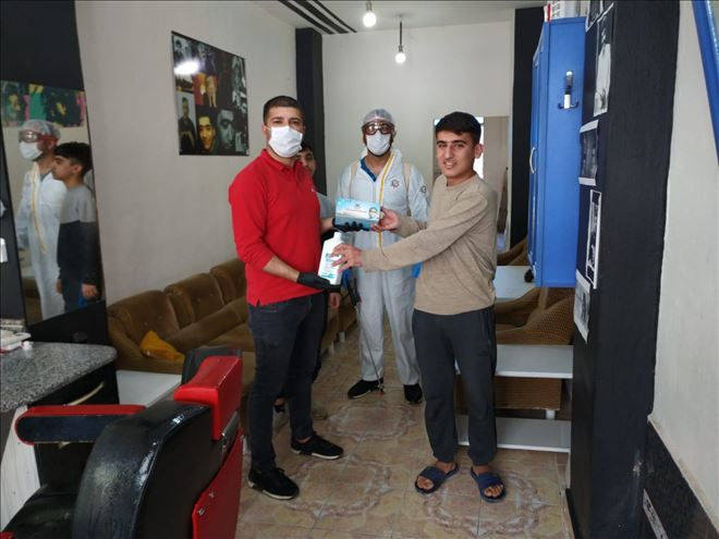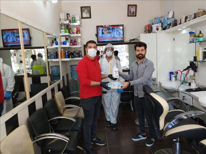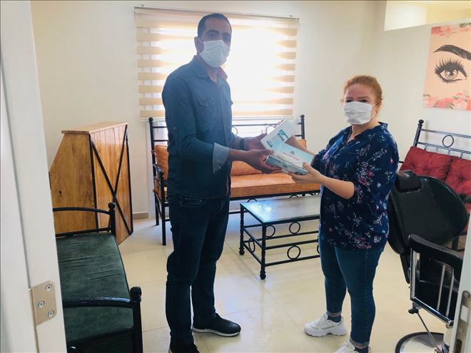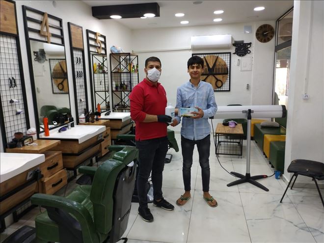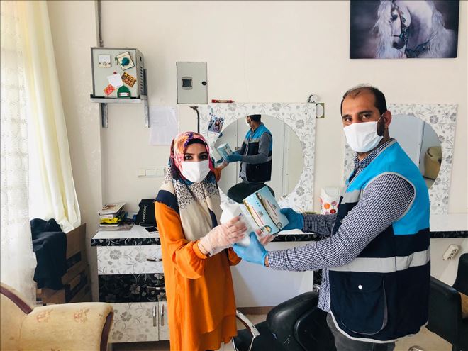 Mardin´in Nusaybin ilçesi Esnaf ve Sanatkarlar Odasından Berber, Kuaför ve Güzellik salonlarına maske, eldiven ve dezenfektan dağıtıldı.