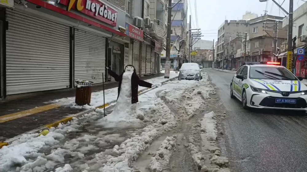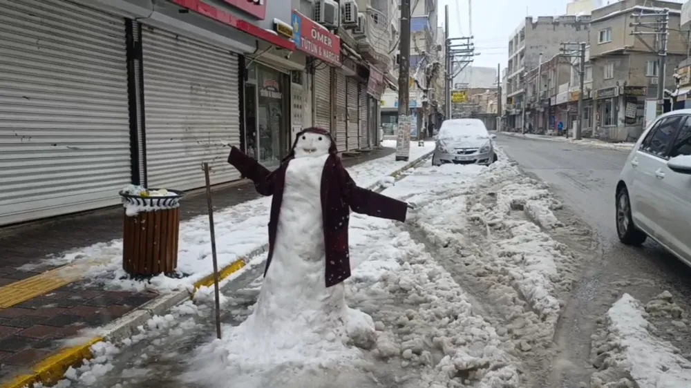 Nusaybin’de dört yıl aradan sonra bu yıl yeniden kar yağarken, kış mevsimi boyunca üçüncü kez etkili olan yağış sokakları beyaza bürüdü. Karla karşılaşmanın sevincini yaşayan çocuklar, park ve sokaklarda kartopu oynayıp kardan adam yaparak üzerine hırka ve bere giydirerek doyasıya eğlendi.