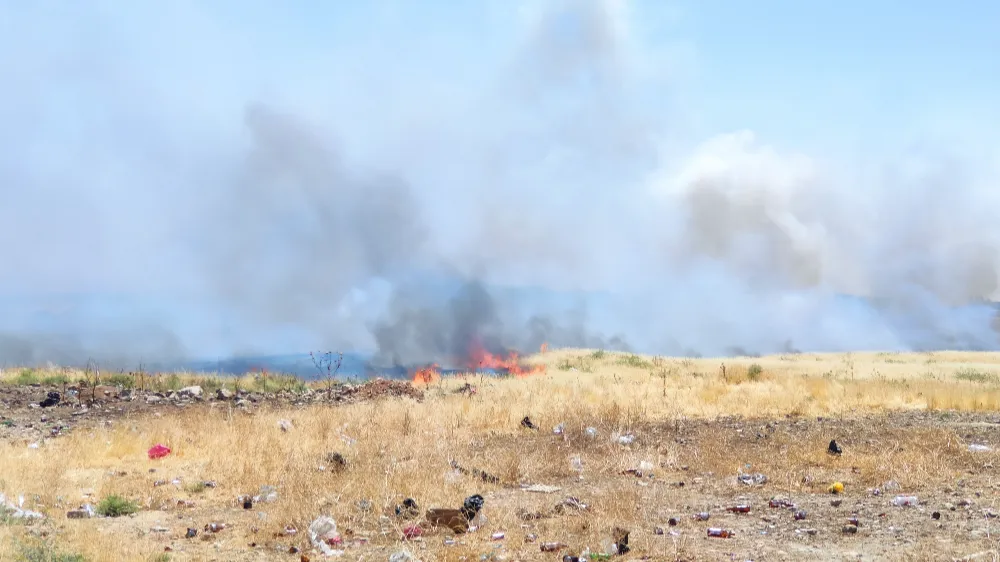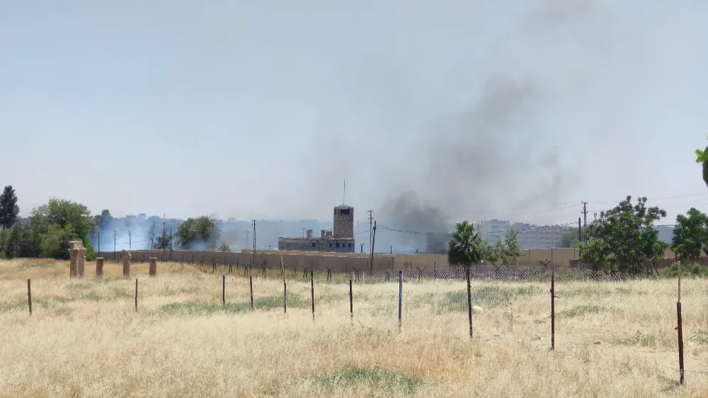 Nusaybin ve Kamışlı kenti arasındaki mayınlı sınır bölgesinde iki farklı noktada öğle saatlerinde kuru otların yanmasıyla çıkan yangın rüzgarın etkisiyle büyüyerek eski sınır kapısı, askeri karakola ve sınırdaki nöbetçi kulübelere doğru ilerledi.