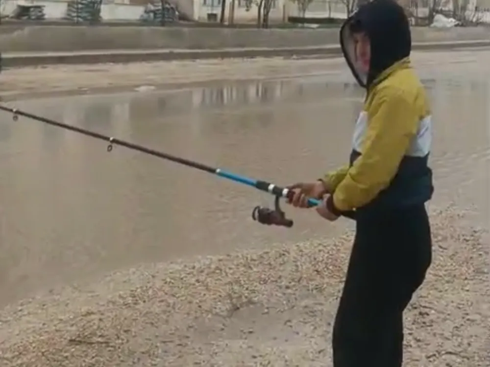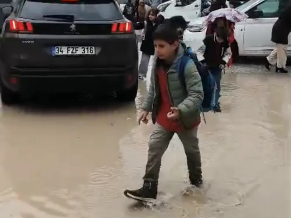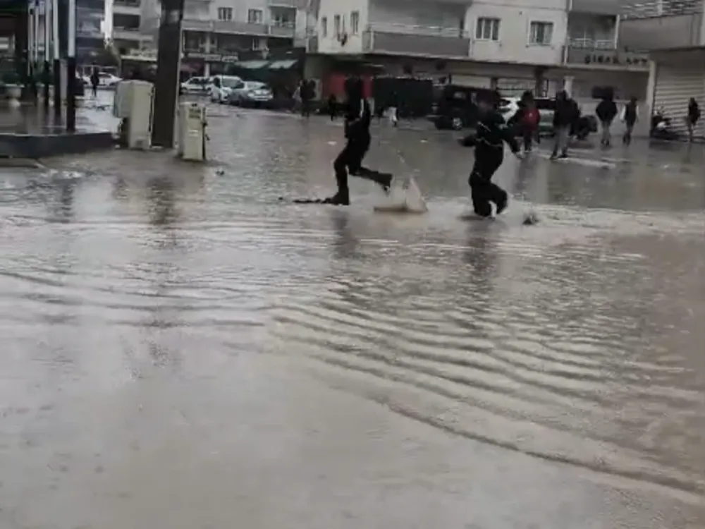 Öte yandan Yenişehir Mahallesi Belediye Sokak’ta oluşan geniş su birikintisi de dikkat çekti. Bir çocuk, biriken yağmur suyunun oluşturduğu gölete balık oltası atarak yaşanan duruma esprili ama anlamlı bir şekilde tepki gösterdi. O anlar çevrede bulunan vatandaşların da ilgisini çekti.