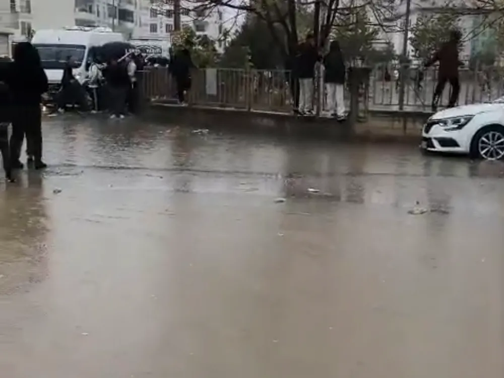 Nusaybin’in 8 Mart Mahallesi’nde bulunan Nisibis Ortaokulu önünde oluşan su birikintisi nedeniyle öğrenciler, okula giriş ve çıkışlarda suyun içinden geçmek zorunda kaldı. Ayakkabı ve pantolonları ıslanan öğrencilerden bazıları ise ıslanmamak için okulun bahçe duvarına çıkarak okula ulaşmaya çalıştı. Öğrenciler, her yağmur yağışında okul önünde aynı manzaranın yaşandığını belirterek duruma tepki gösterdi.