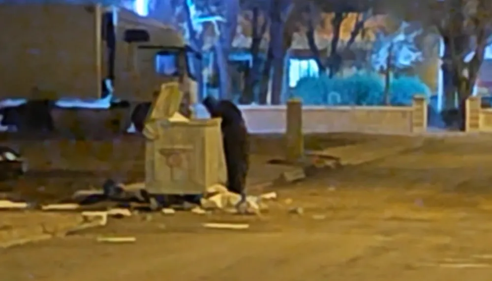 Gecenin soğuğunda ellerindeki eldivenle çöp konteynerlerini tek tek karıştıran yaşlı kadının, plastik atık toplayarak geçimini sağladığı düşünülüyor. Görgü tanıkları, kadının her gün sokakta ki çöp konteynırından atık plastik topladığını belirtti.
